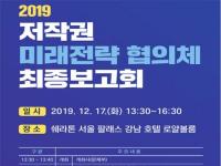 포스터 문화체육관광부는 한국저작권위원회, 한국저작권보호원과 함께 17일 오후 1시 30분부터 4시 30분까지 서울 팰리스강남 호텔에서 ‘2019 저작권 미래전략협의체 최종보고회’를 개최한다.