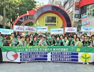 군포시새마을회(회장 서태연)는 지난 12일 산본로데오거리에서 `시민과 함께하는 1417 피크시간대 전기 덜 쓰기` 범국민 에너지 절약 캠페인을 추진했다.이날 캠페인은 새마을회원 50여명이 참여한 가운데 피켓과 현수막을 활용해 산본로데오거리를 행진하며 ▲실내온도 26도 이상 유지하기 ▲엘리베이터 사용 줄이기 ▲불필요한 조명소등하...