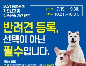 광명시는 오는 9월 30일까지 ‘반려동물 자진신고’ 기간을 운영한다. 반려 목적으로 기르는 2개월 이상 개는 반드시 동물등록을 하도록 하고 있으며 반려동물 등록을 하지 않거나 변경신고를 하지 않을 경우 100만원 이하의 과태료가 부과된다. 시는 자진신고 기간 이후 반려동물 미등록자, 정보변경 미신고자를 집중 단속할 계획이며,...