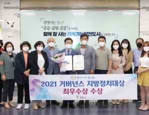 박승원 광명시장은 2일 서울여성플라자에서 열린 2021년 제3회 거버넌스지방정치대상에서 ‘최우수상’을 수상하며 자치분권 선도도시임을 다시 한번 입증했다. 거버넌스 지방정치대상은 매년 지방정치에서 거버넌스에 기반한 자치분권 활동을 강화하고 확산한 지방자치단체장에게 수여하는 상으로, 사단법인 거버넌스 센터가 주최...