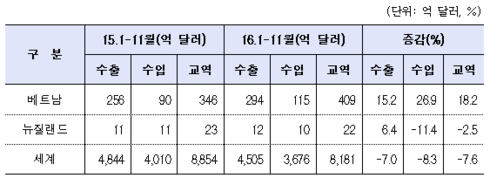 베트남, 뉴질랜드와의 FTA 발효 후 수출 훈풍