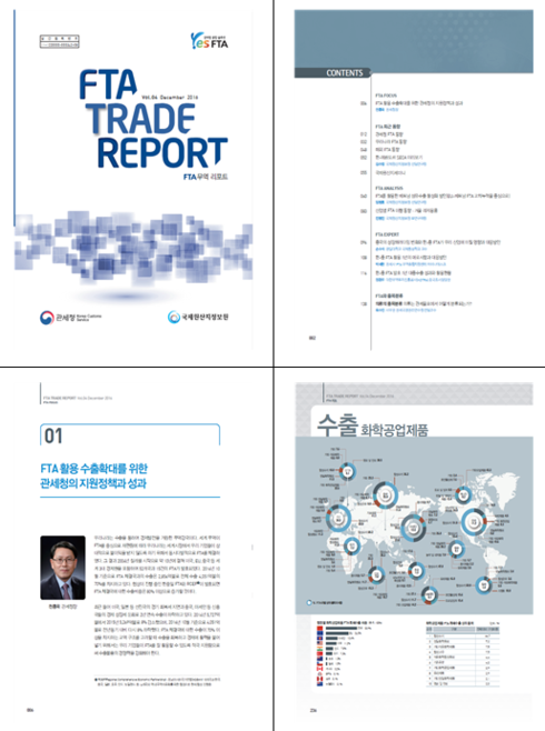 [시사인경제] 관세청은 국제원산지정보원과 함께 자유무역협정(이하 FTA) 동향·전문 지식 등 종합 정보를 수록한 2016년 4분기 ‘FTA 무역 리포트’를 발간했다고 밝혔다.