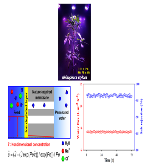 맹그로브라는 염생식물의 뿌리가 가진 물 정화 메커니즘을 생체모방하여 기존의 담수화 기술과는 유사한 물 정화 성능을 보이면서 막의 막힘, 높은 에너지 소비 등의 문제점들이 발생하지 않는 지속 가능한 해수담수화 기술을 구현했다.