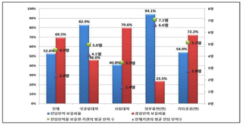 대학·공공(연)의 지식재산 담당조직 보유 비율이 증가하였으며 전담인력 보유 비율 역시 증가했다.