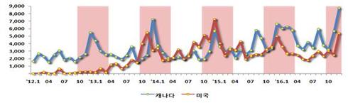 또한, 바닷가재는 크리스마스·연말 특수로 겨울에 수입이 집중되는 경향을 보이고 있다.