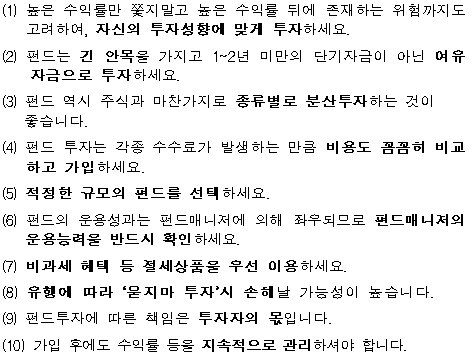 온라인을 통해 좋은 펀드를 쉽게 선택할 수 있도록 펀드 투자시 고려해야 하는 중요사항 제공해야한다.