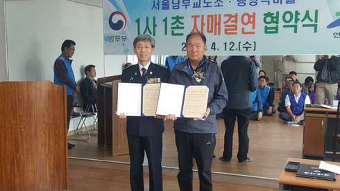 [시사인경제] 안산시 대부도 행낭곡(14통)과 서울 남부교도소는 지난 12일 행낭곡 경로당에서 1사 1촌 자매결연 협약식을 가졌다고 밝혔다.