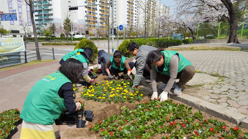화단에 식재한 봄꽃은 가로변에 핀 벚꽃과 새싹이 돋고 있는 가로수와 어울려 쌈지공원이 갖는 아담함으로 오가는 주민의 발길을 사로잡았다.