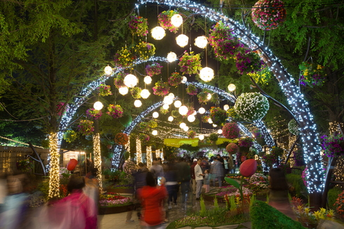 사진은 늦은 시간에도 추억을 남기려는 사람들로 붐비는 ‘알록달록 정원’의 모습.