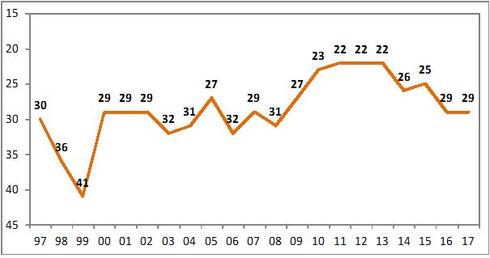 2017년 IMD 국가경쟁력 평가 순위 29위