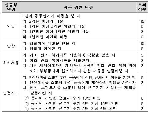 특히, 뇌물수수, 담합, 허위서류 발급·제출, 안전사고 야기 등 4대 불공정행위 이력을 점검해, 반복적으로 시장 질서를 어지럽힌 조달기업은 종합쇼핑몰에서 납품기회를 제한키로 했다.