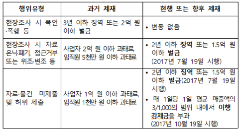 한편, 지난 4월 공정거래법 개정으로 7월 19일부터는 자료 제출 거부 등의 행위에 형벌 부과가 가능해졌다.
