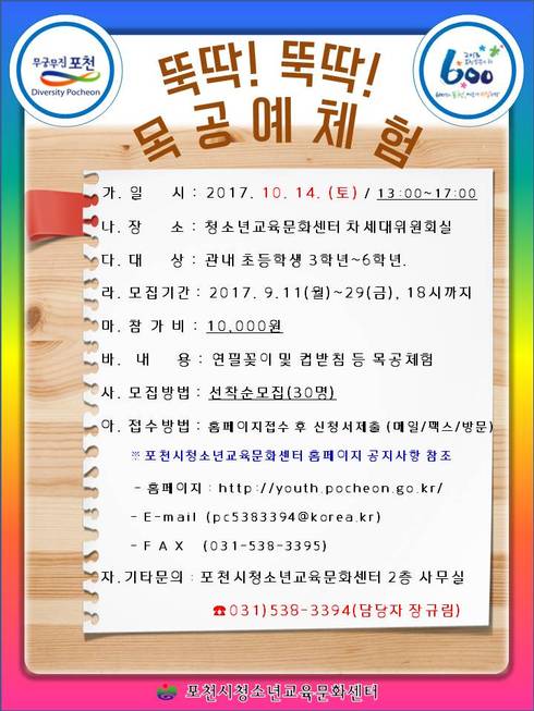 포천시, 뚝딱! 뚝딱! 목공예 체험 참가자 모집