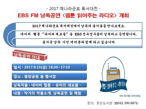EBS FM 낭독공연 ‘웹툰 읽어주는 라디오’… 중앙공원에서 오는 15일 개최