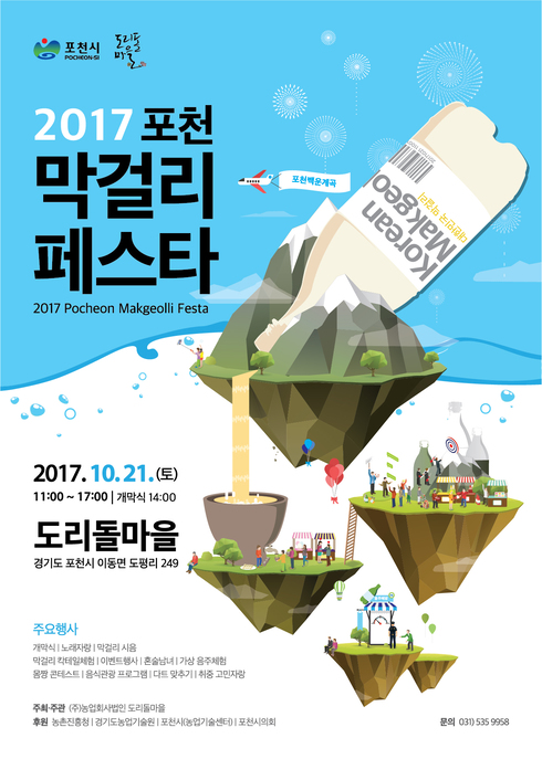 포천시농업기술센터 농업지원과에서 추진하는 지역자원 연계형 음식관광 네트워크 구축 시범사업의 일환으로 개최되는 2017 포천막걸리 페스타는 도리돌마을의 음식과 맛을 연계한 맛기행 루트 구축과 포천이동막걸리를 이용한 음식관광 상품화로 농촌관광 활성화에 목적을 둔 행사이다.