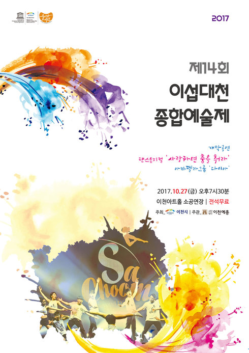 오는 27일 오후 7시 30분부터 이천아트홀 소공연장에서 개최되는 ‘제14회 이섭대천 종합예술제’ 개막식은 5인조 혼성 아카펠라 그룹 “다이아(D.I.A)”의 개막공연을 시작으로 뮤지컬 갈라쇼 “사랑하면 춤을 춰라”로 진행되며, 이천 예총에서는 올해 1년 동안 준비한 각종 공연과 전시회에 많은 시민의 관심과 호응을 기대하고 있다.