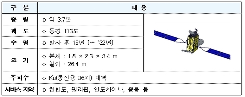 과거 일본, 필리핀 등 해외 일부에 서비스 됐던 위성보다 무궁화 위성 5A호는 통신 능력을 향상시켜 한국과 7,500㎞ 떨어져 있는 중동 일부지역에도 서비스가 가능하도록 설계됐다.