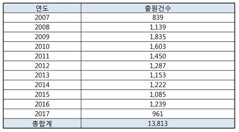 특히, 출원건수 상위 10개 제품 중 7개가 일상생활에서 흔히 사용하는 미용, 위생 등 피부와 관련된 상품인 것으로 나타나 깨끗하고 순수한 환경에 대한 관심이 친환경제품으로 확대되고 있는 것으로 분석됐다.