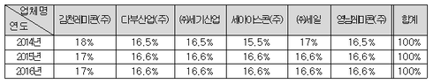 6개 레미콘업체들은 지난 2013년 12월경 업체별 판매물량에 대한 비율을 정하고, 지난 2015년 말에는 ㈜세일을 제외한 5개 레미콘업체들이 200㎥이상 되는 신규 현장에 대해서는 판매량이 적은 업체가 우선적으로 계약할 수 있도록 지원하기로 하고 이를 위반하고 임의로 계약하여 레미콘을 납품한 업체에 대해서는 납품물량에 대해 5배수 패널티를 적용하기로 합의했다.