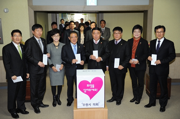 한편 수원시의회는 본회의 시작에 앞서 연말연시를 맞아 어려운 이웃에게 희망을 전하기 위한 모금활동을 펼쳐 훈훈함을 전했다.