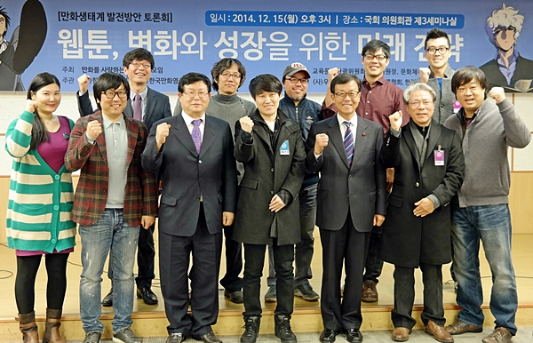 모임을 주최한 만화를 사랑하는 국회의원 모임 공동대표 원혜영 의원은 환영사를 통해 “웹툰 ‘미생’이 드라마로 탄생해 많은 사랑을 받고 있는 지금, 웹툰의 성장에 탄력을 불어넣기 위한 만화계와 정부, 국회의 공동 노력이 필요하다”며 “오늘 토론회를 통해 나온 의견들을 모아 법제화 하기 위해 만화를 사랑하는 국회의원 모임과 교육문화체육관광위원회가 함께 노력하겠다”고 강조했다.