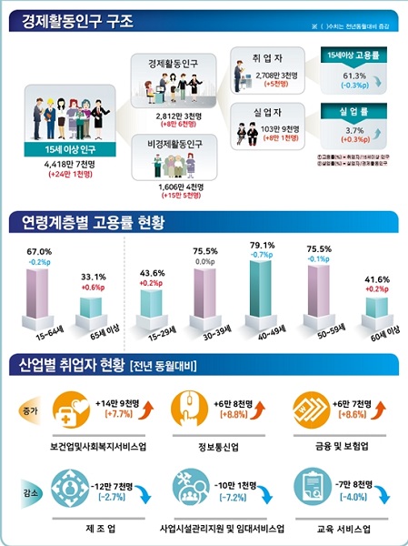 7월 취업자 전년비 5천명 증가, 실업률은 3.7%로 전년동월대비 0.3%p 상승