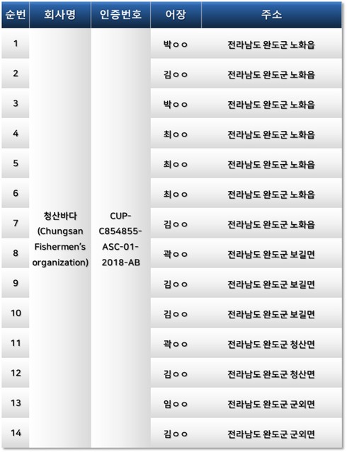 이번 인증 취득으로 우리나라는 전복 ASC 인증 양식어가 전체 17개 중 14개를 차지하며 가장 많은 전복 ASC 인증 양식어가를 보유하게 됐다.
