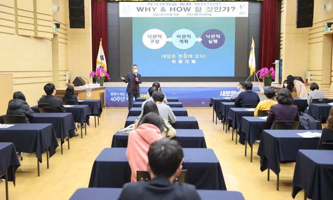 광명시는 이날 오전 광명시청 대회의실에서 박승원 광명시장, 공무원 50여명이 참석한 가운데 ‘행정의 달인’ 최덕림 前 순천만국제정원박람회 추진단장을 초청하여 ‘적극행정! WHY, HOW 할 것인가?’를 주제로 적극행정 특강을 실시하고 ‘적극행정 실천다짐 결의대회’를 열었다.