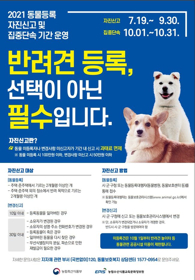 2021년 동물등록 자진 신고 및 집중단속 기간 운영