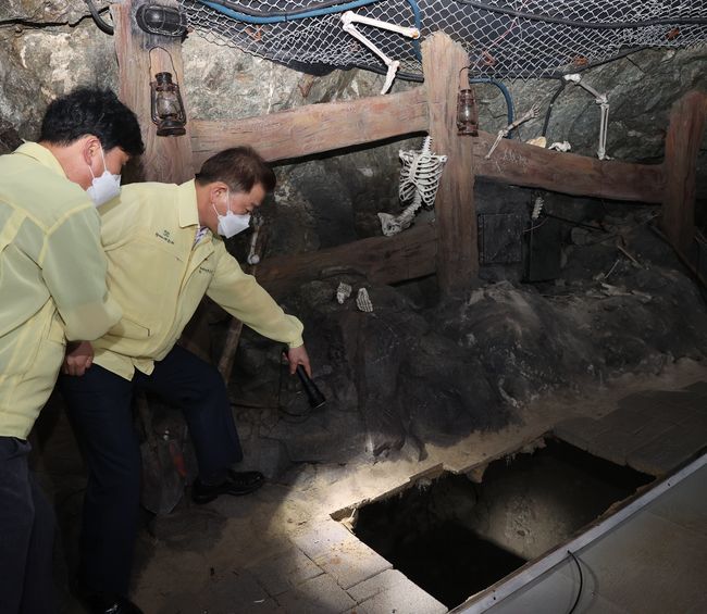 박승원 광명시장은 8월 24일 광명동굴을 방문해 보행로 침하 사고 현장을 확인했다