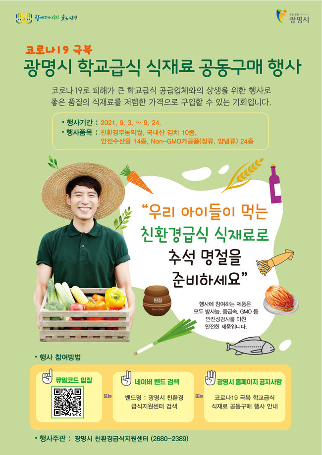 광명시는 9월 3일부터 9월 24일까지 ‘학교급식 식재료 공동구매 행사’를 연다.