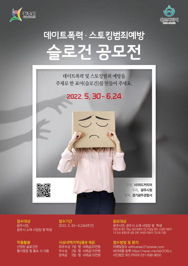 이번 공모전은 폭력 예방과 시민들의 인식개선을 위해 광주시가 ‘2022년 양성평등기금 공모사업’으로 보조사업자 (사)위드커리어를 선정해 추진하는 사업이다.