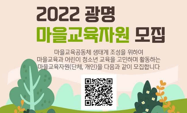 광명시 교육협력지원센터는 29일부터 8월 26일까지 마을 교육 활성화를 위해 광명 마을 교육 자원을 모집한다.