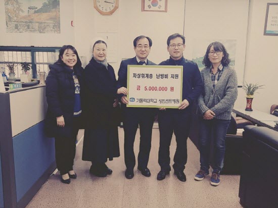 【시사인경제】가톨릭대학교 성빈센트병원 자선회는 지난 6일, 매교동 관내 저소득층의 난방비 지원을 위해 써달라며 매교동주민센터를 방문하여 성금 500만원을 전달하였다.