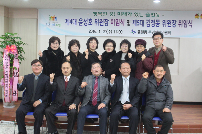 【시사인경제】수원시 장안구 율천동(동장 심언형)은 지난 20일 주민센터 2층 문화사랑방에서 주민자치위원장 이·취임식 행사를 가졌다.