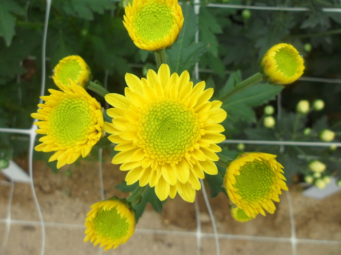 스프레이 국화 주력 품종은 ‘그린드림’, ‘큐티드림’, ‘화이트드림’, ‘썸머드림’ 등 4종이다. ‘그린드림’ 품종은 중심이 녹색인 연분홍색 겹꽃형 품종으로 꽃다발 제작에 잘 어울리며 절화수명이 길고, 주년 개화반응이 안정적이다. 또한 디스버드형(가지에 꽃이 크게 한 송이만 달리도록 재배하는 방식)으로 재배가 가능하여 부가가치가 높다.