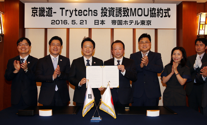 남경필 지사는 이날 오후 5시, 도쿄 제국호텔에서 구와야마 히로아키(桑山裕章) ㈜트라이텍스 대표이사와 안산 반월공단 내에 ㈜트라이테크 코리아 공장 설립을 위한 2천만 달러 규모의 투자유치 협약을 맺었다.
