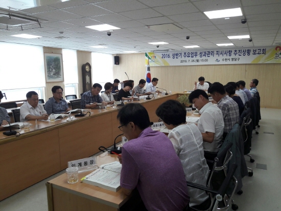 【시사인경제】수원시 팔달구(구청장 배민한)는 지난 25일 2016년 상반기 주요업무・성과 및 지시사항 추진상황에 대한 보고회를 가졌다.