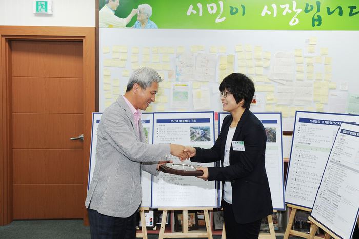 곽상욱 오산시장은 집무실에서 세교마을봉사센터 리더로 활동중인 이은경씨를 1일 명예시장으로 위촉하고 환담을 나누며 명예시장으로서의 임무를 성실히 이행해 줄 것을 당부했다.