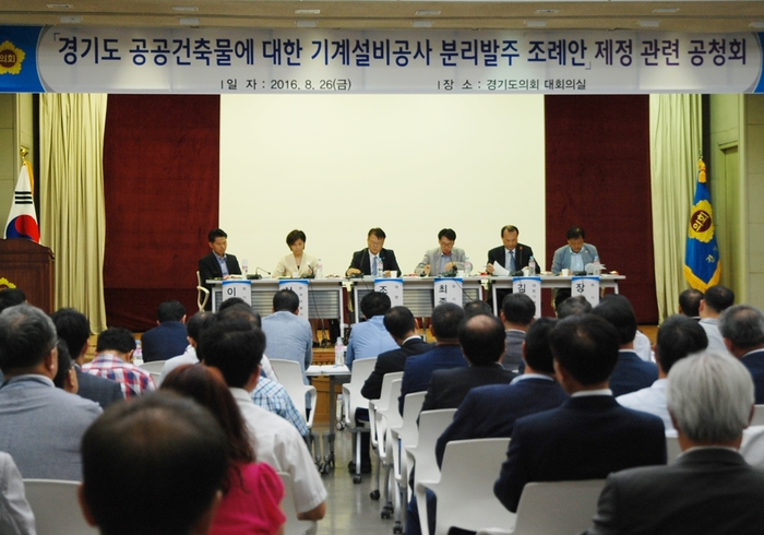 【시사인경제】경기도의회 건설교통위원회는 지난 26일 의회 대회의실에서 ‘경기도 공공건축물에 대한 기계설비공사 분리발주 조례안' 제정 관련 공청회를 개최했다.