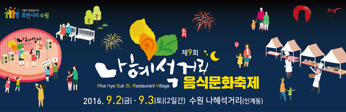 한편 개최 전까지 수원시 위생정책과 페이스북(www.facebook.com/officialsuwonfood)에서는 축제관련 퀴즈 정답자 중 추첨을 통해 나혜석 거리 내 일부 업소에서 사용가능한 음식쿠폰 또는 음식체험행사 우선권을 증정하는 이벤트를 진행하고 있다.