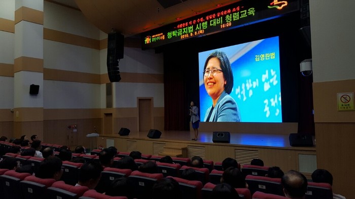 시 공무원과 유관단체 임원 등 300여 명을 대상으로 한 이번 교육엔 청렴윤리교육센터 박연정 대표가 강사로 나섰다.