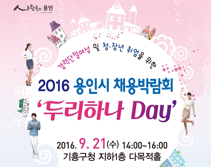 【시사인경제】용인시는 기업의 고용을 촉진하고 구직자에게 취업기회를 제공하는 ‘두리하나 Day' 채용박람회를 오는 21일 오후2시 기흥구청 다목적홀에서 개최한다고 밝혔다.