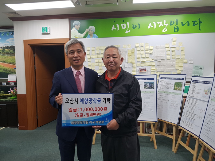 【시사인경제】오산시 애향장학재단의 인재육성을 위한 장학금 사업에 지난 10일 장학금을 지원하는 뜻 깊은 기부의 손길이 이어져 지역사회에 훈훈한 감동을 주었다. 그 주인공은 재단의 박명삼이사와 고일석 센터장이다.