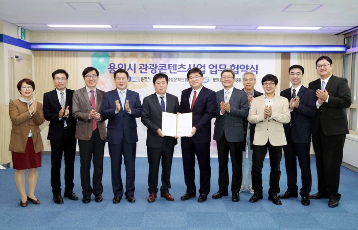 용인시는 12일 증강현실 게임 어플리케이션을 개발한 청강문화산업대학교와 관광지에서 게임을 즐길 수 있도록 하는 ‘어메이징 용인 관광콘텐츠사업’ 업무협약을 체결했다고 밝혔다. 이날 협약식에는 정찬민 용인시장과 청강문화산업대 유대근 총장이 참석했다.