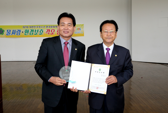 【시사인경제】수원시의회 염상훈(새누리당, 율천․정자1동) 부의장이 지난 29일, 지구환경보호 실천을 위해 수원시 제1야외음악당에서 열린 '제7회 대한민국 청소년 환경문화제'에서 의정공로패를 수상했다.