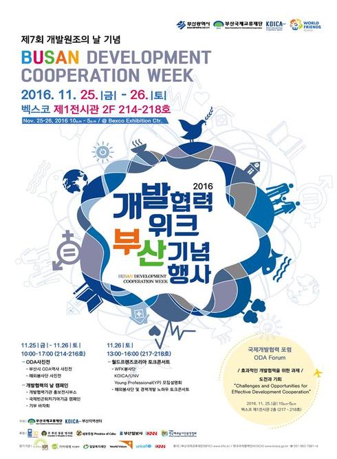 [시사인경제]부산시와 부산국제교류재단, KOICA 부산센터(이하 코이카)는 제7회 개발원조의 날을 기념해, 오는 25일(금)과 26일(토) 양일간 '2016개발협력WEEK 부산기념행사(이하 개발협력위크)'와 국제개발협력 포럼(이하 ODA포럼)을 개최한다고 밝혔다.