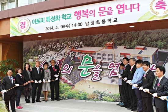 이날 남창초등학교에서 개최된 아토피 특성화 학교 기념식에는 염태영 수원시장, 김영일 수원교육지원청 교육장, 남창초교 동문회와 학부모 등 200여명이 참석했다.