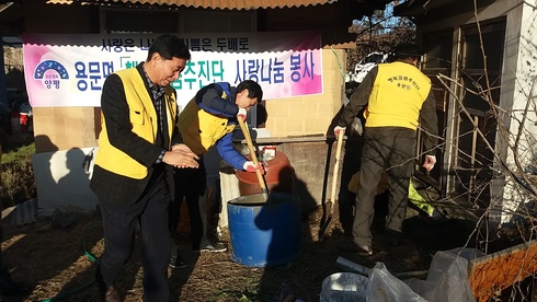 당일 봉사활동에는 용문면 행복돌봄추진단 함상수 단장을 비롯해 행복돌봄추진단원10명, 용문면 바르게 살기 위원회 박천묵 위원의 재능기부로 보일러실 창문 및 문, 보일러 배관의 미장작업등이 이루어 졌다.