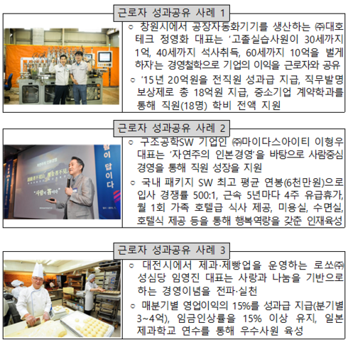 기존의 기업 매출규모‧경영자 중심의 평가방식과 달리 근로자를 위한 성과공유 사례를 핵심적으로 평가, 선정했다는데 의의가 있다.